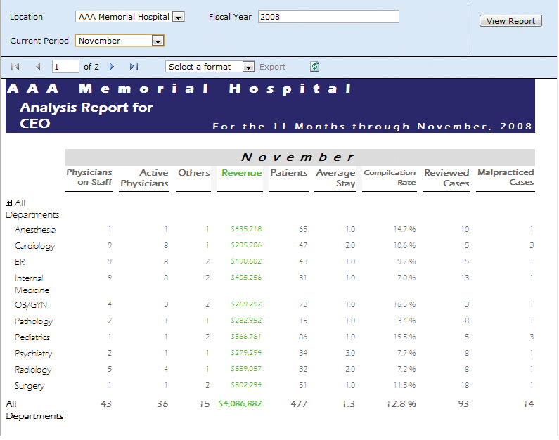 - Provides the CEO with custom reports to help increase revenue and save costs.