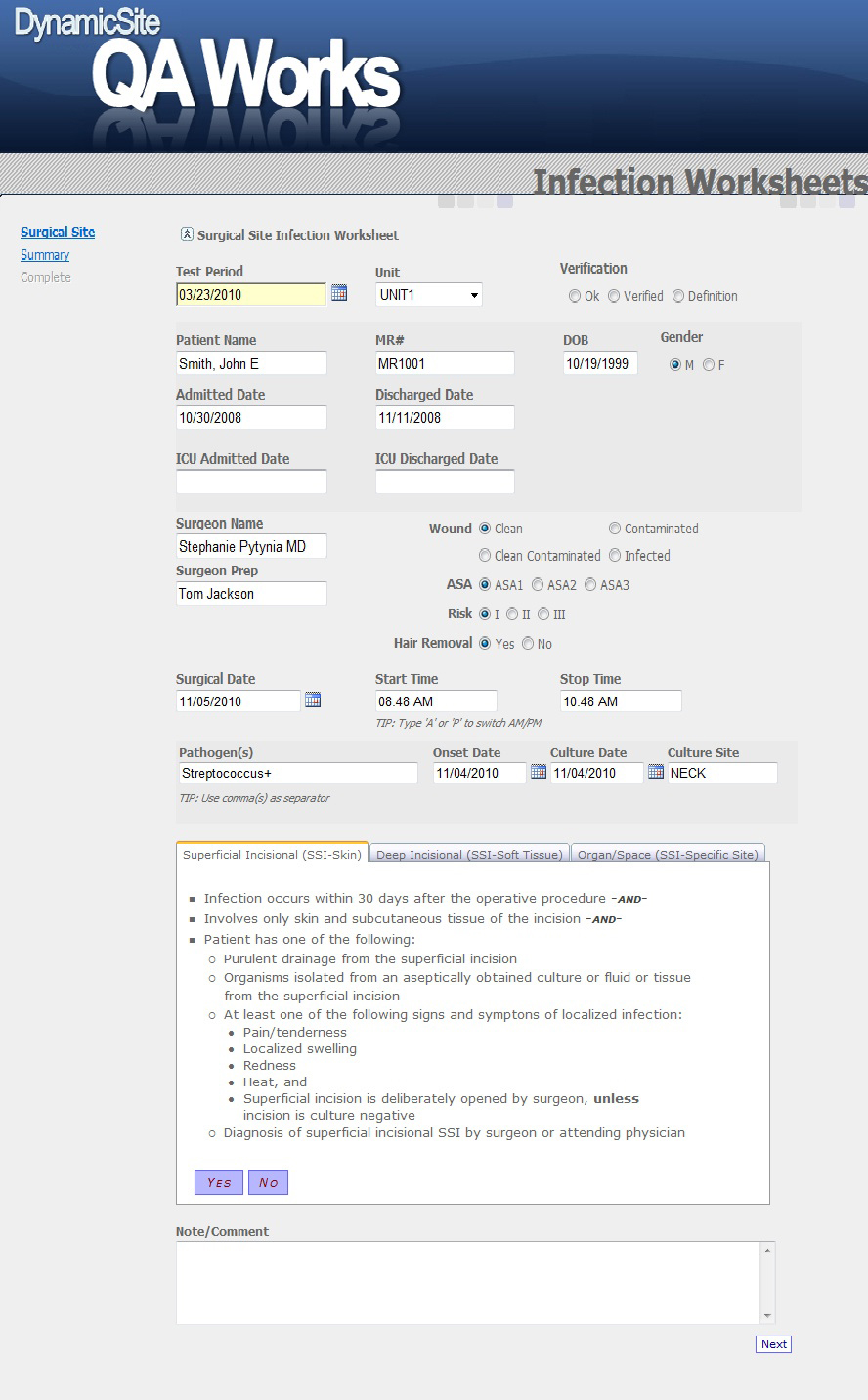 QA Works Answer: QA Works integrates data from pertinent systems including microbiology, pathology and ADT systems to automate culture and sensitivity reports. Provides NIH validation protocols to classify infections and delivers monthly reports in electronic formats approved by regulators. Saves tremendous time and work and improves accuracy of reports.